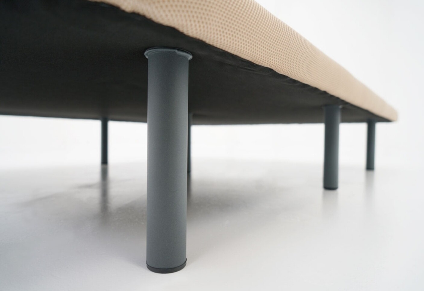 Bastidor tapizado en tejido Air Fresh 3D de 200gr, ofrece un alto nivel de transpiración. Base firme y rígida con 6 pletinas de rosca para sujeción de 6 patas. (7 pletinas en medidas de mas de 135).