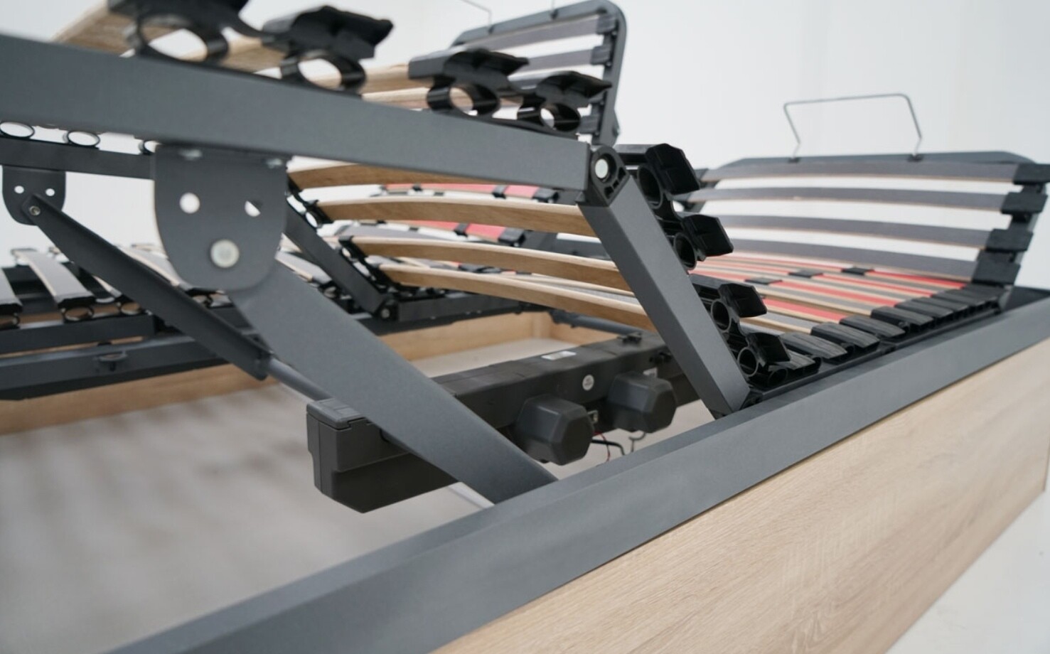 En Grupo Mamapla le ofrecemos el canapé abatible con somier articulado eléctrico de doble lecho, una solución avanzada de descanso diseñada para parejas que desean regular cada lado de la cama de forma independiente, sin renunciar a un amplio espacio de almacenaje.
