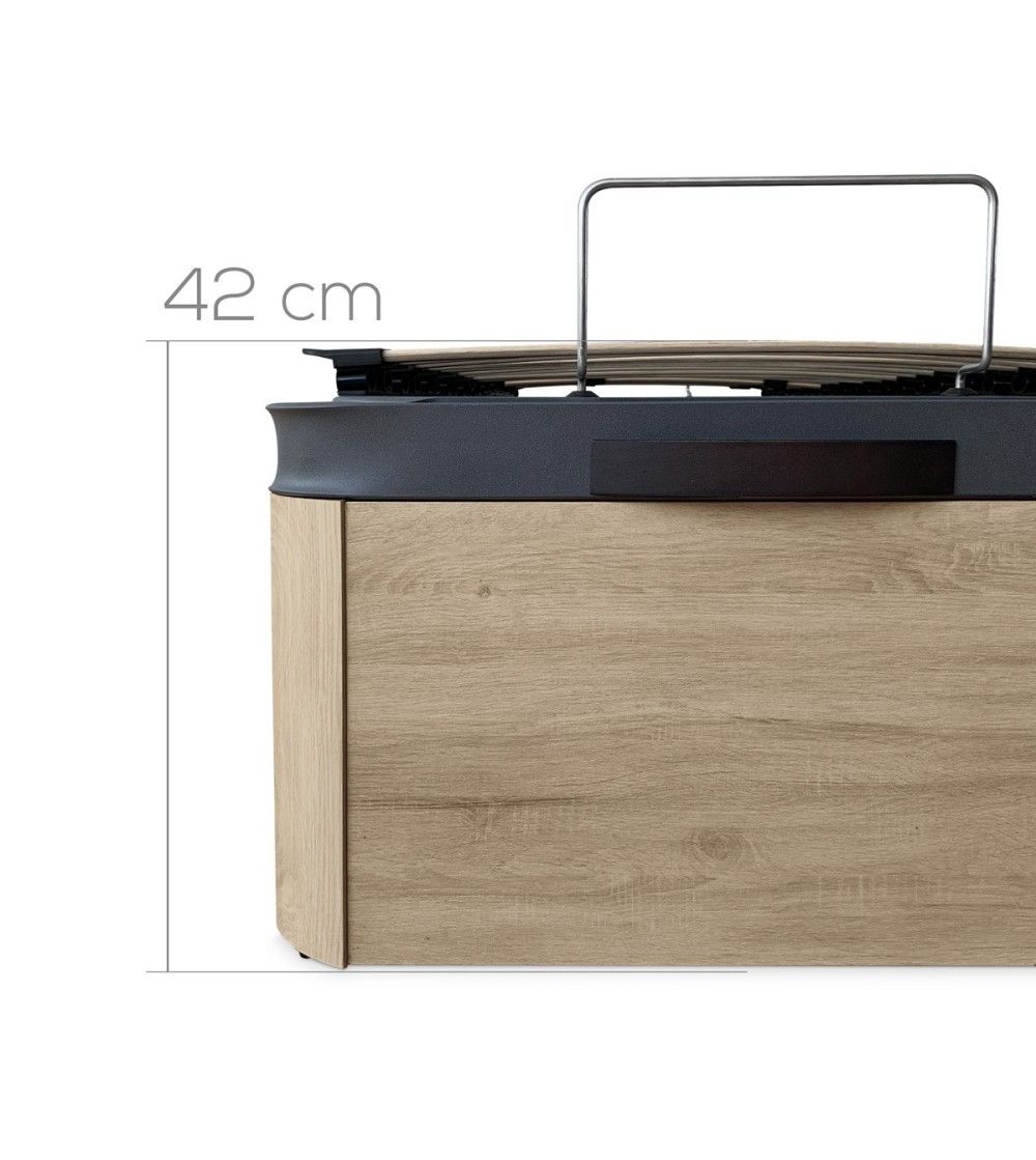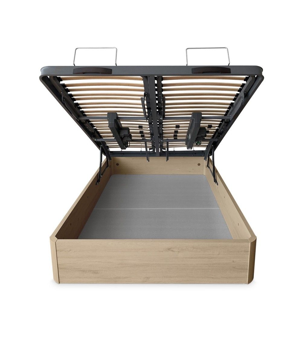 Este sistema combina somier articulado eléctrico, estructura robusta de madera y canapé abatible de gran capacidad, ofreciendo comodidad, funcionalidad y practicidad en un solo conjunto.