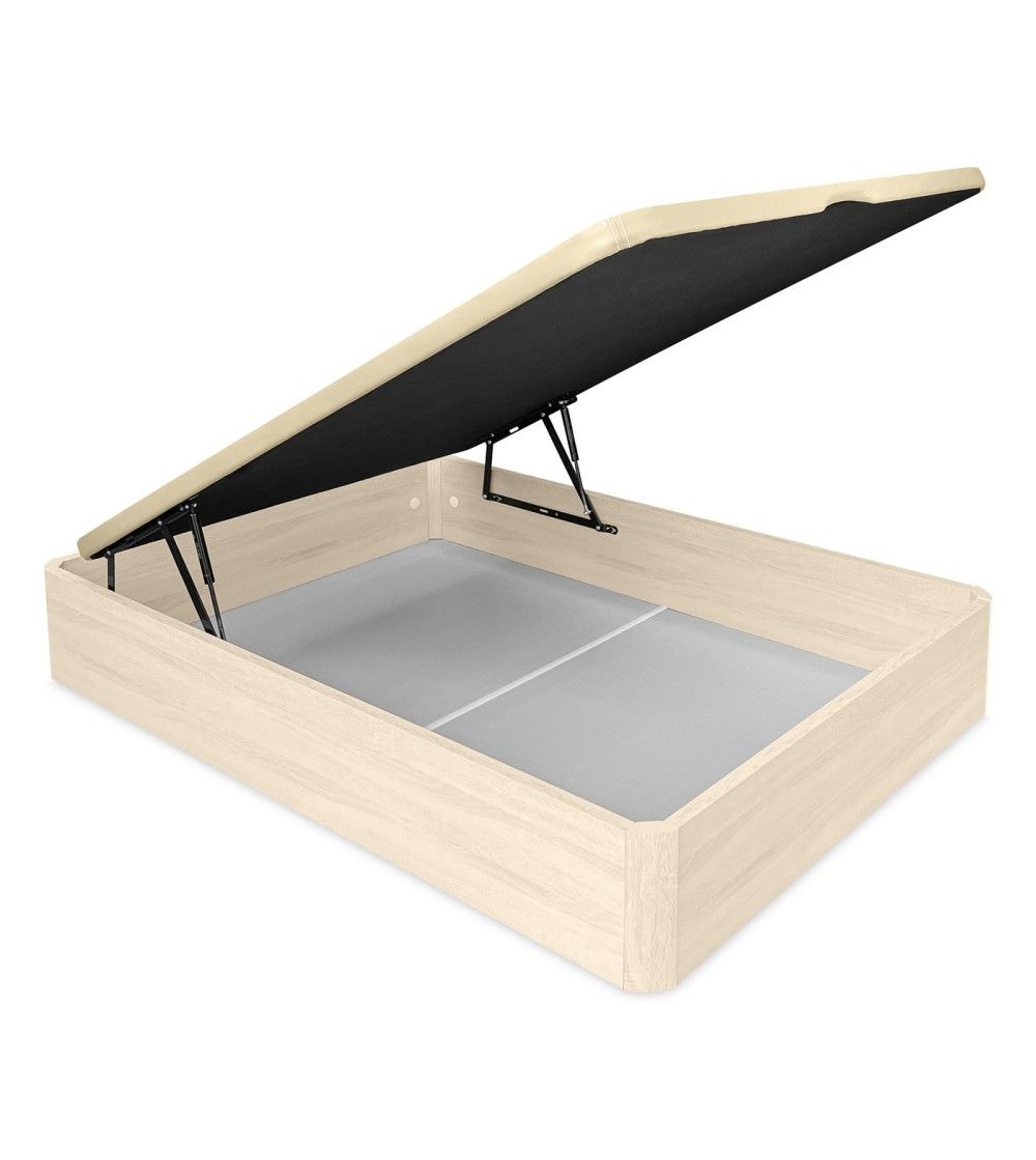 El canapé abatible Lionel Gold destaca por su construcción sólida y su mecanismo de elevación suave y seguro, que permite un acceso cómodo al interior.